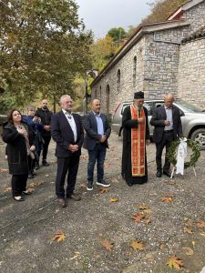 Μετά το τέλος της εκδήλωσης, ακολούθησε κατάθεση στεφάνου στο μνημείο πεσόντων του χωριού από αντιπροσωπεία του ΔΣ του Συλλόγου, παρόντων και λοιπών συγχωριανών, ενώ προσφέρθηκε και καφές για όλους στην ταβέρβα “5ΦΦΦΦΦ”.